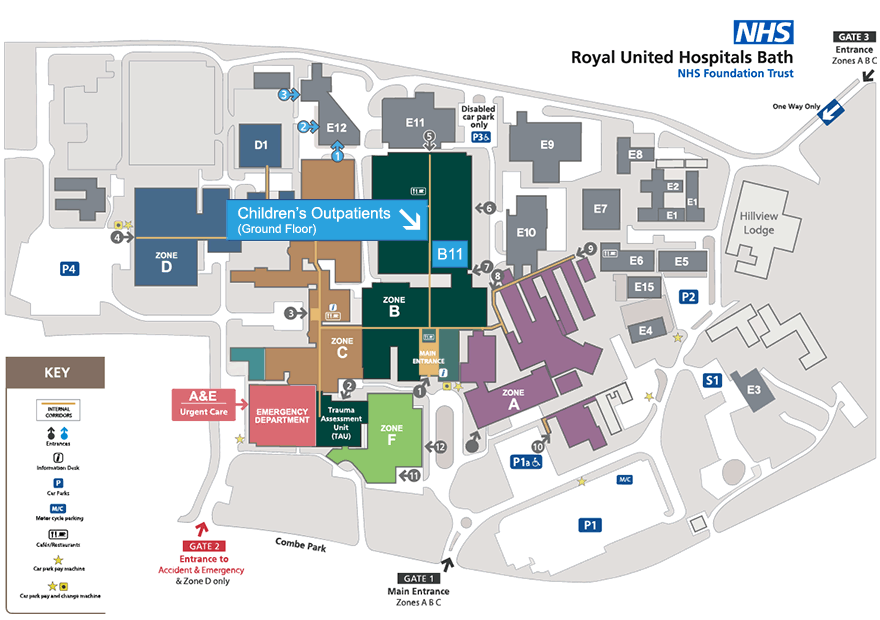 All the maps available from this page can be printed in either colour or black and white. However, the different parts of the hospital are colour coded to match the colour coding of the decor and directions within the hospital in order to make your journey easier.